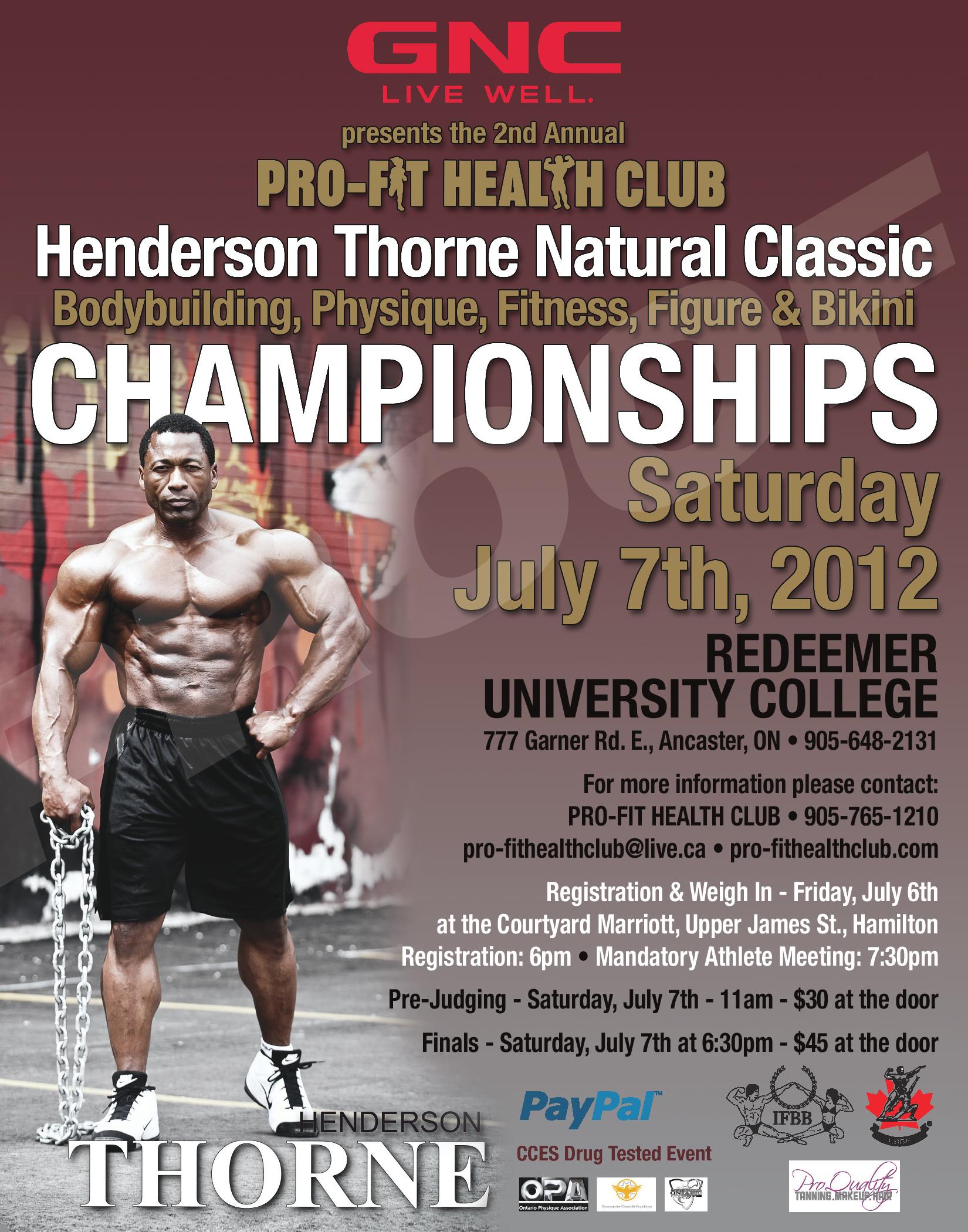 2012 GNC LIVE WELL PRESENTS PRO-FIT HEALTH CLUB HENDERSON THORNE CLASSIC