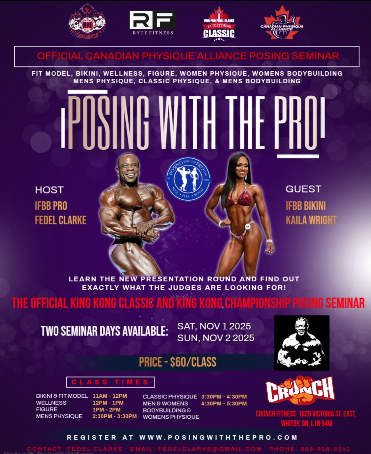 Venue: Crunch Fitness, 1629 Victoria St. East, Whitby, ON